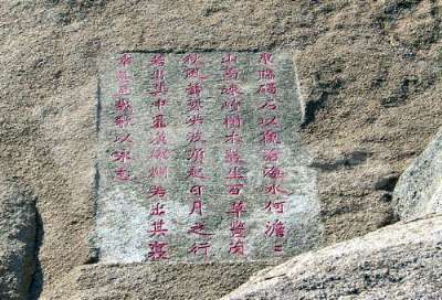 秦始皇在公元前(215年)秋东巡时登上碣石山,令人刻不容缓下“碣石门辞”,赞颂始皇统一中国的丰功。