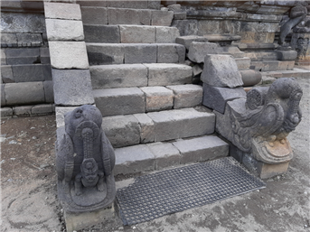 마카라는 계단 오른쪽 전면에도 있다. 문 오른쪽 벽에는 보살상이 새겨져 있다. 날개벽 바깥쪽에는 天界樹(칼파타루), 앵무새, 항아리 등과 합장하여 기도하는 보살상과 시종의 부조가 있다.