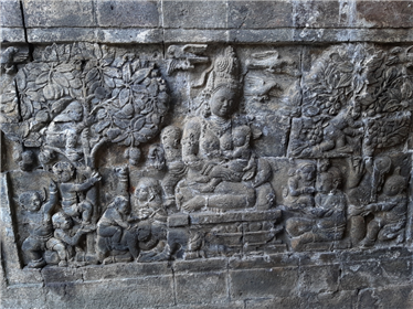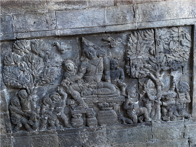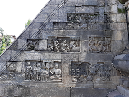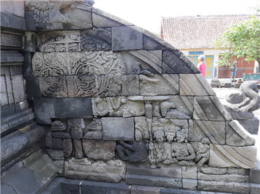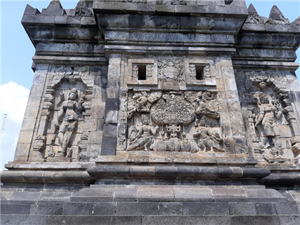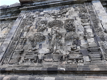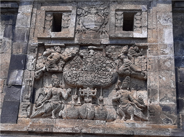 외벽의 천계수는 부조 조각의 걸작이다. 자바인들은 보석으로 장식한 나무를 새겨 하늘나라(天界)를 상징적으로 표현하고 있다. 나무 밑에는 보석 항아리가 놓여있고 그 좌우로 천상계에 사는 半人半鳥인 킨나라 킨나리(Kinnara Kinnari)의 모습이 보인다. 킨나라 킨나리는 인도 신화에서 음악의 신인데 킨나라는 남성, 킨나리는 여성의 모습이라고 한다. 불교의 팔부중 중 긴나라에 해당된다. 비천상의 모습도 우아하다. 자바인들은 천인(天人)이나 천계수를 보는 것만으로도 사후 천상계로 갈 수 있다고 믿었던 것 같다.