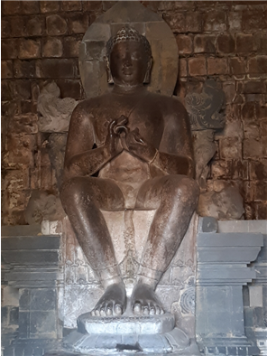 입구를 통해 주실에 들어가면 인도네시아 불상 중 제일의 걸작이라고 하는 삼존불상이 안치되어 있다. 얇은 대의와 당당한 체구(높이 3m, 보살 2.4m)로 양감과 박력이 있는 모습이다. 본존은 석가여래. 양 협시는 관세음보살과 금강수보살. 균형 있는 체구에 힘이 실렸다. 중앙의 석가여래는 초전법륜인을 하고 있는데 석가가 성도(成道)를 한 뒤 처음으로 녹야원에서 5비구에게 설법한 것을 상징적으로 나타낸다. 인도불상의 흉내를 내어 의좌상을 하고 있으나 인도불상처럼 육감적이지 않고 명상에 잠긴 모습이다.