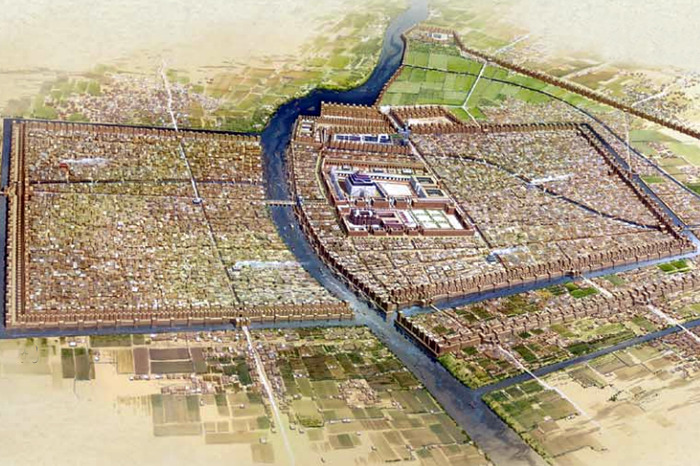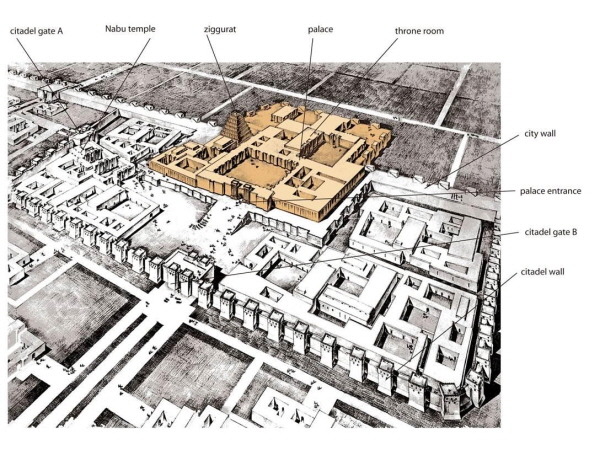 <사르곤 2세의 성채와 왕궁 복원도, 코르사바드, 기원전 710년경>