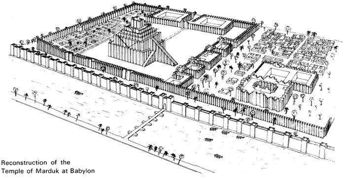 옛바빌론말로 '높게 만든 지역의 건축'이라는 뜻으로 신전의 기단이라고 할 수 있는데, 이 기단위에 신의 성소가