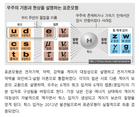 <그림1>우주의 기원과 현상을 설명하는 표준모형