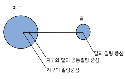 지구의 질량은 달의 81배가 되므로 달이 지구를 도는 공전궤도 거리보다 81배 짧은 공전궤도로 달을 공전하는데, 서로 공전하는 그 중심점을 ‘지구와 달의 공통 질량 중심’이라고 한다.