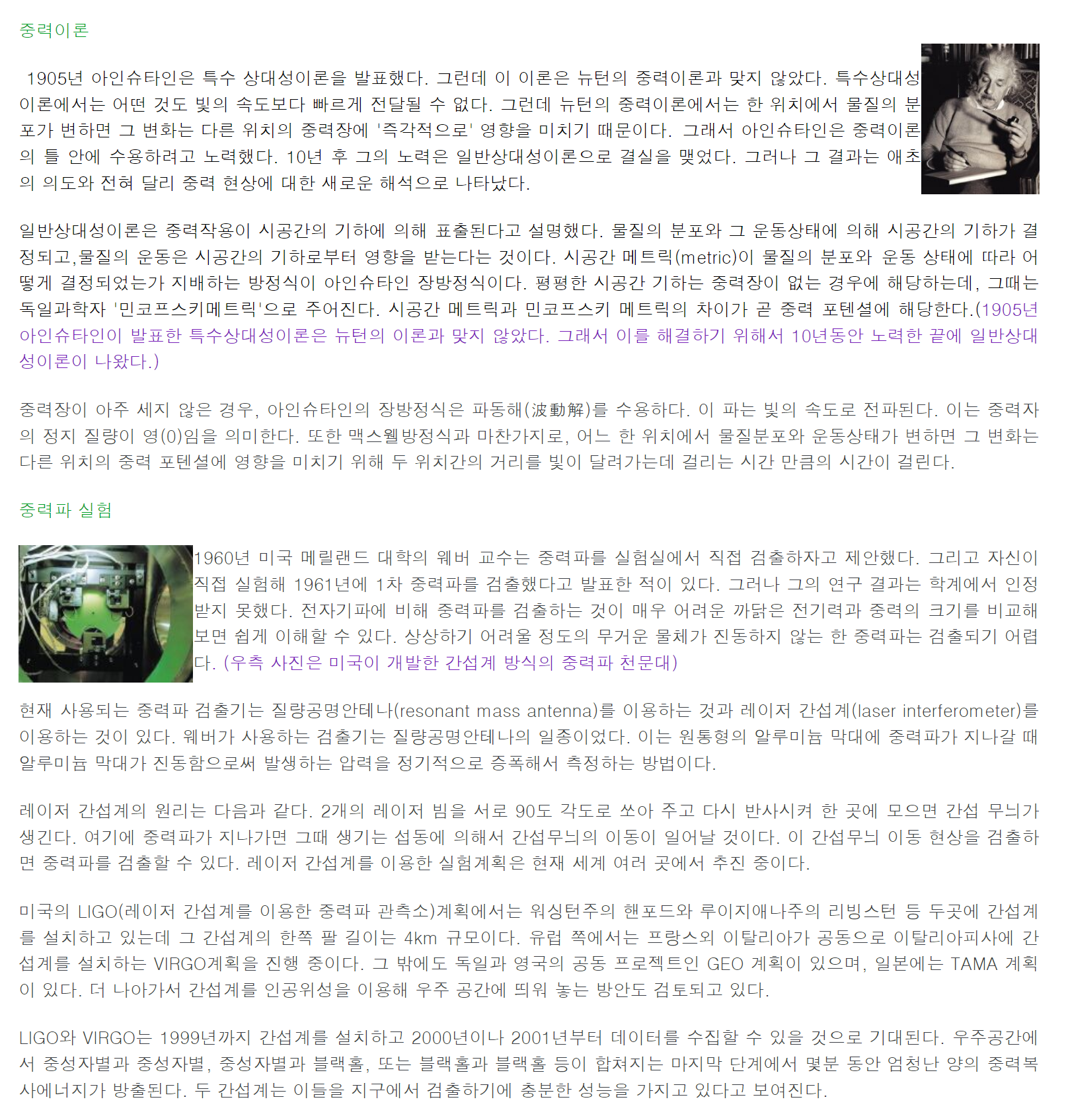 중력이 본질적으로 물체를 끌어당기는 힘이 아니라는 사실은 일반 상대성 이론을 통해 검증되어 있다.