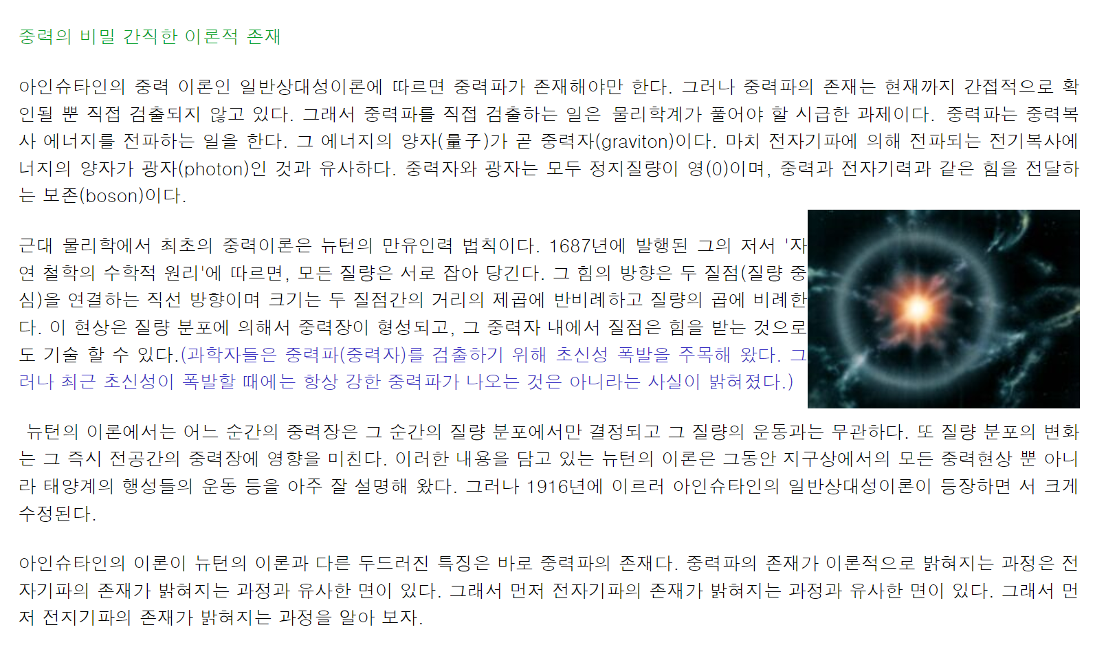 부연설명하자면, 중력자는 물체를 끌어당기는 입자가 아니다.