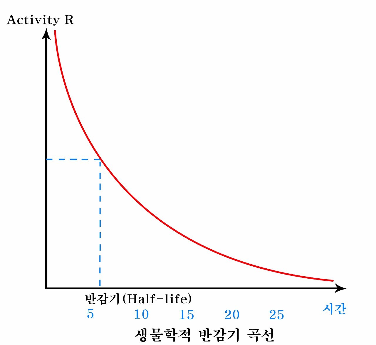 생물학적반감기biological half-life, biological half-time , 生物學的半減期