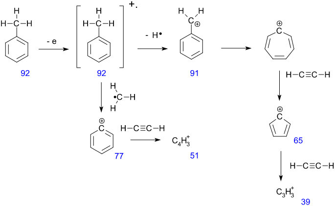 톨루엔(Toluene)의 조각(Fragmentation) 이온化.
