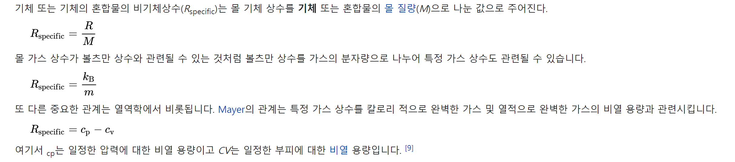 여기서 cp는 일정한 압력에 대한 비열 용량이고 CV는 일정한 부피에 대한 비열 용량입니다. [9]