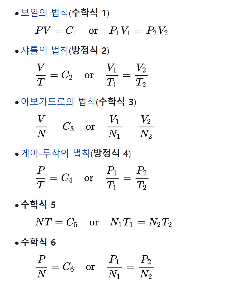 이상기체 법칙으로부터 파생 원리