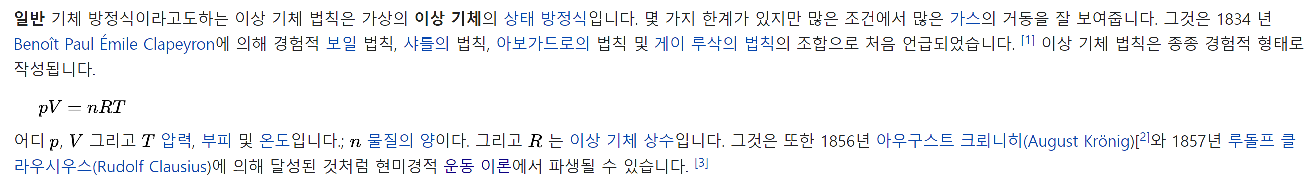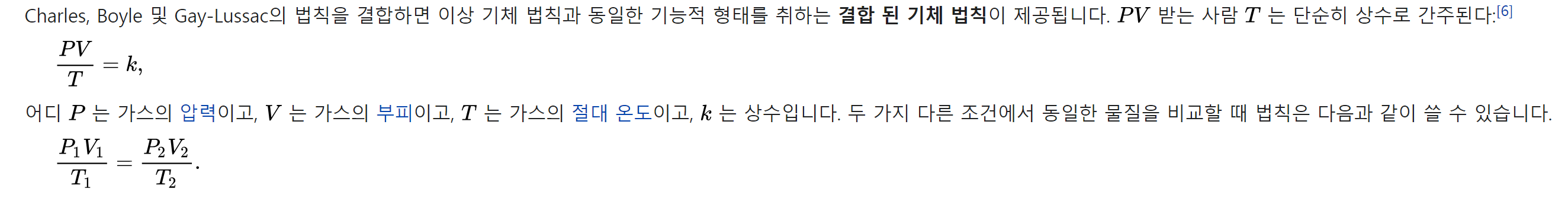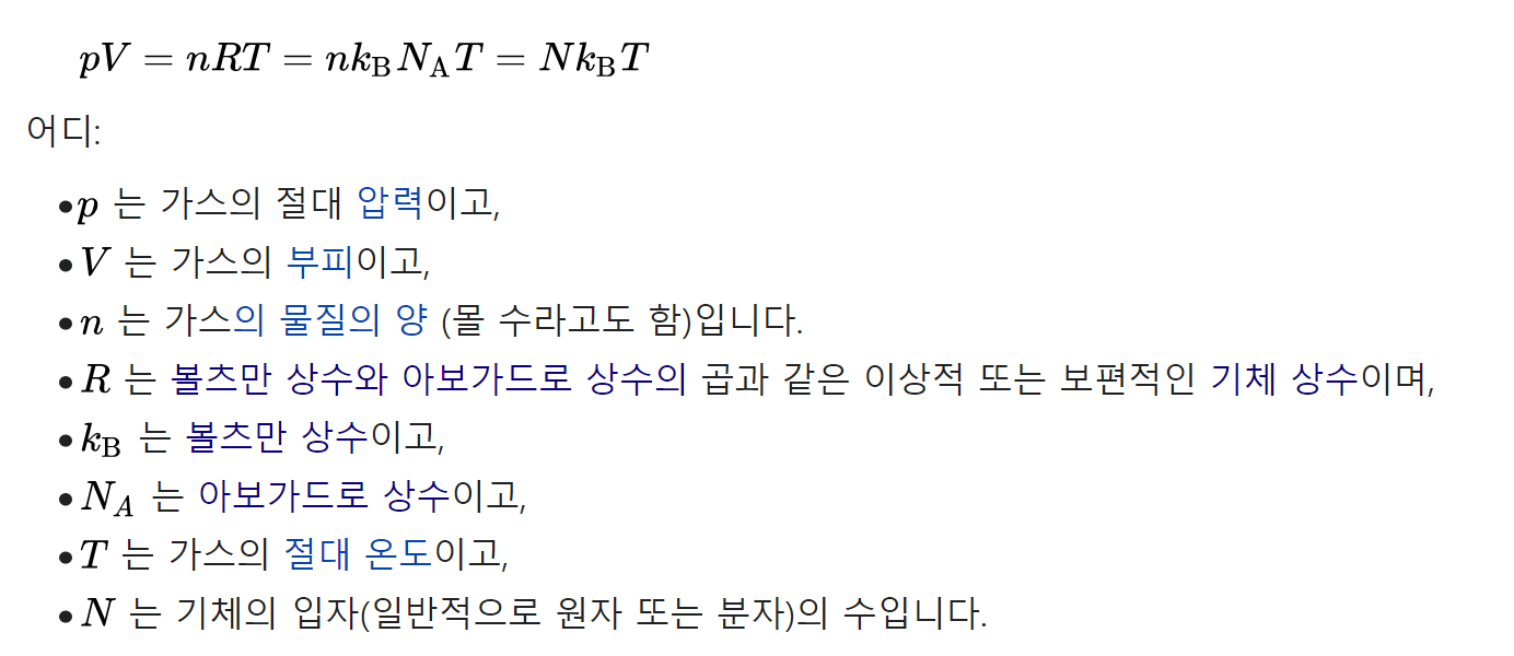 가스의 양은 압력, 부피 및 온도에 의해 결정됩니다. 방정식의 현대적 형태는 이들을 단순히 두 가지 주요 형태로 관련시킵니다. 상태 방정식에 사용되는 온도는 절대 온도입니다 : 적절한 SI 단위는 켈빈입니다.