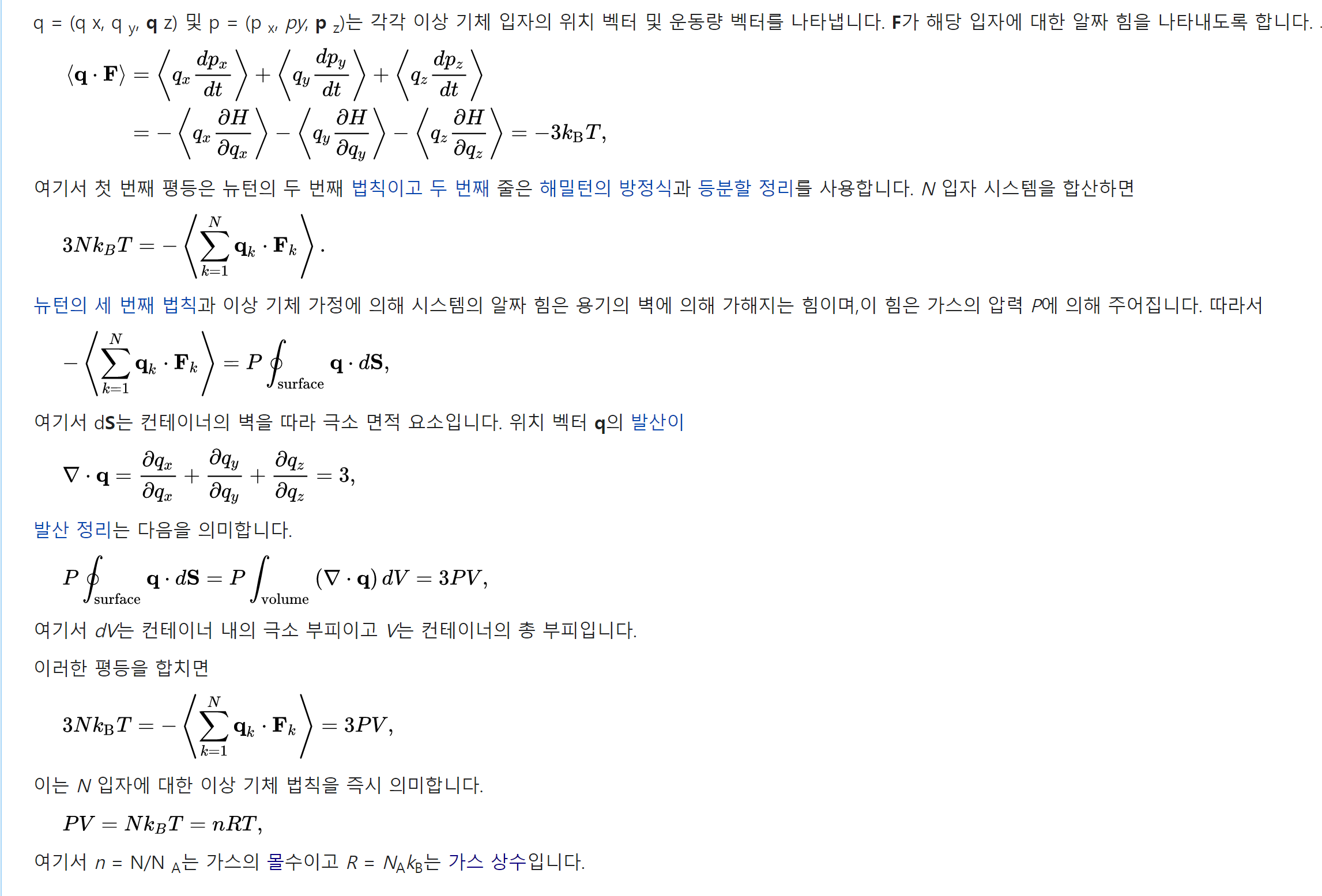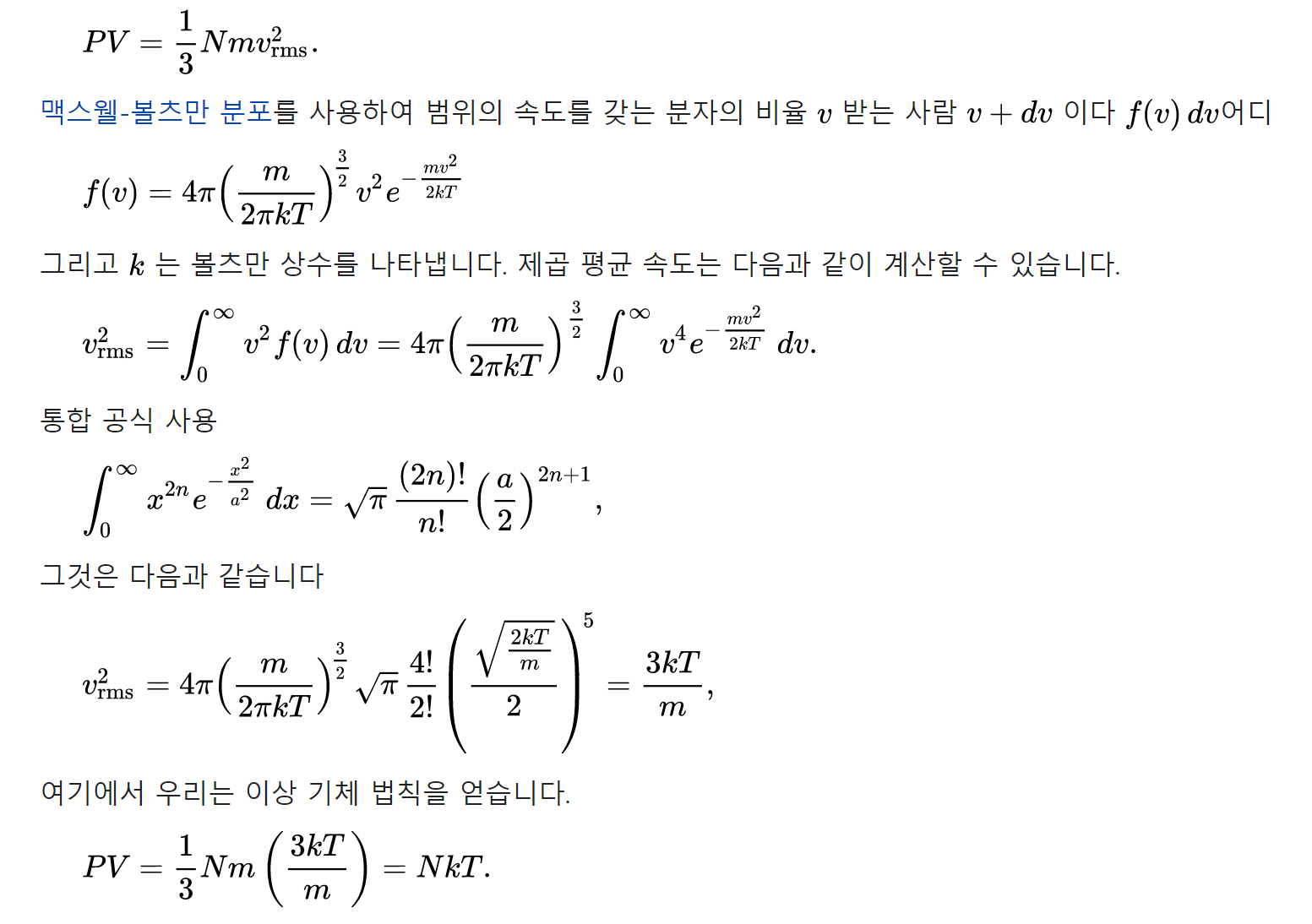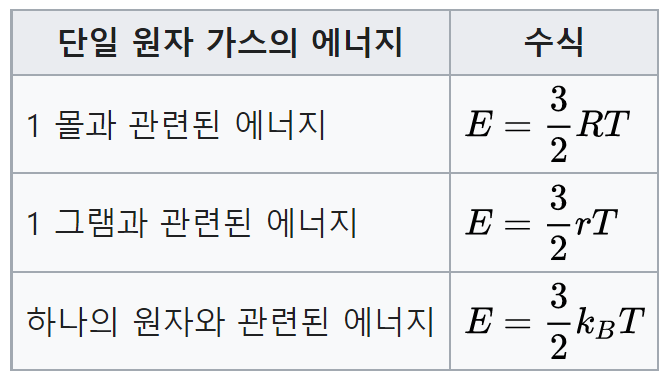 즉, 위치 에너지는 0입니다. 따라서 기체가 소유하는 모든 에너지는 기체의 분자 또는 원자의 운동 에너지입니다.