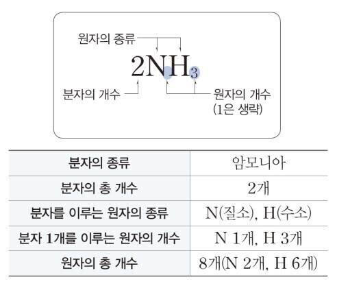 분자의 종류, 분자의 총 개수, 분자를 이루는 원자의 종류, 분자 1개를 이루는 원자의 개수, 원자의 총 개수를 알 수 있다.