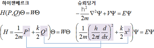 또한 슈뢰딩거 방정식을 구성하는 해밀토니언(Hamiltonian) 연산자 역시, 고전역학의 해밀턴 역학에서 사용하는 해밀토니언 H로부터 자연스럽게 확장시켜 사고할 수 있다.