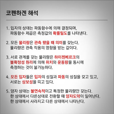 보어를 우두머리로 한 코펜하겐 파의 주장은 다음과 같습니다.
