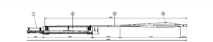대신기전의 구조 ① 대신기전 발화통(폭탄) ② 약통(로켓엔진) ③ 안정막대(대나무) ④ 깃털,
