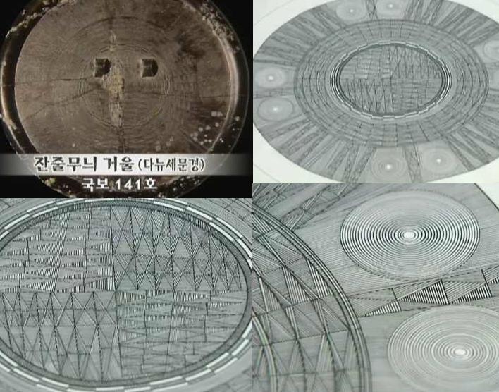 다음 구리거울의 사진은 기원전 4세기 무렵 청동기시대에 만든 국보 제141호로 이른바 ‘다뉴세문경’이라고 부르는데, 이는 우리조상들이 세계 최고수준의 정밀기술로 만든 것이다.
