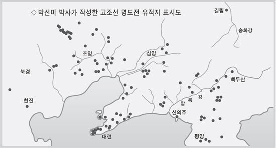 명도전 유적의 위치를 표시한 지도는 서울시립대학교 인문과학연구소 박선미 연구원이 2000년에 발표한 석사학위 논문 ‘기원전 3~2세기 고조선의 문화와 명도전 유적’에 나온다.