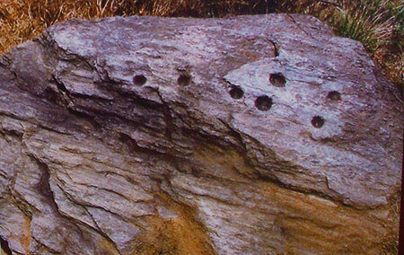 고인돌의 뚜껑돌에 있는 홈구멍은 고인돌을 채취하고 가공하는 과정에서 생긴 흔적으로 보거나