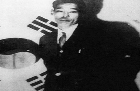 1932년 1월 8일 이봉창 의사가 일본 도쿄의 천황 신년 관병식에서 폭탄 투척을 결행하기 직전, 태극기 앞에서 거사를 다짐하며 촬영한 미공개 사진. 정성길 관장이 독일 함부르크 벼룩시장에서 구한 것이다.