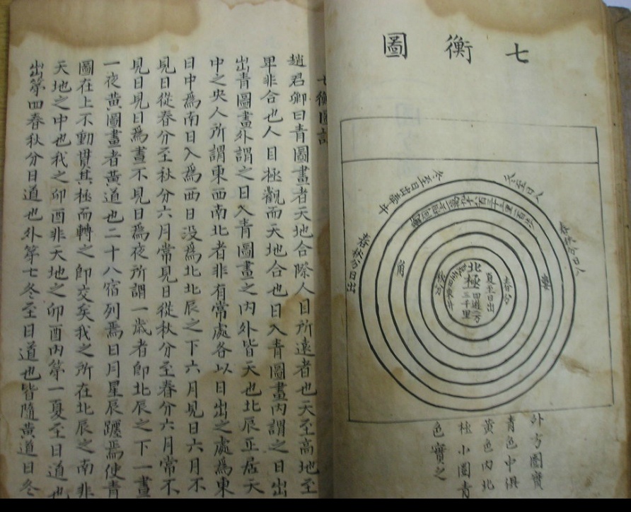 이른바 마치 우주는 원이고 지구는 평평하다는 개천설(蓋 天設)이라고 소개되었습니다.