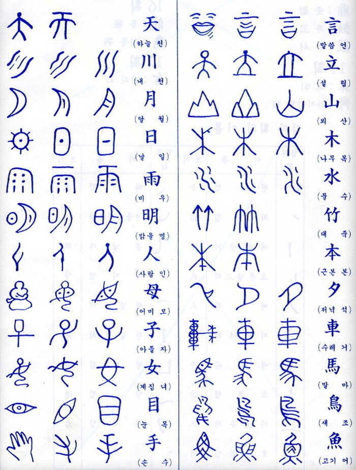 | 대한민국 국민 대부분은 소리글자인 한글은 우리 민족이 만들었고, 뜻글자인 한자(漢字)는 중국 한족이 만든 문자로 알고 있다. 또한 우리나라 한글학자들은 “한자는 중국의 한족(漢族)이 만든 것이며 우리가 B.C 3세기경부터 차용한 것이다.”라면서 아무런 고증 없이 동이족(東夷族)이 한자를 만들었다는 학설 자체를 극력 부정하고 있다. 과연 그럴까? 먼저 몇 가지 일화와 학자들의 주장을 예로 들고 한자의 기원에 대해 알아보기로 하겠다. 1) 해방 후 대한민국의 초대 문교부장관을 지낸 안호상박사가 중국의 저명한 문학자이며 평론가인 임어당(林語堂)선생을 만나 여담으로 "중국이 한자를 만들어 놓아 한자를 사용하는 우리나라까지 문제가 많다"고 하자 임어당선생은 "그게 무슨 말입니까? 한자는 당신네 조상인 동이족이 만든 문자인데 그것도 모르고 있소?"라는 핀잔을 들었다고 한다. 2) 한글재단 이사장인 한갑수선생이 미국 공군 지휘참모대학에 입교했을 때, 같은 입학생인 대만학자 서량지(徐亮之)박사가 한박사를 찾아와 이렇게 말했다. "한(韓)민족은 우리 중국보다 더 오래된 역사를 가진 위대한 민족으로서 문자를 창제한 민족인데, 우리 중국인이 한민족의 역사가 기록된 포박자(抱朴子)를 감추고 중국역사로 조작하는 큰 잘못을 저질렀으므로 본인이 학자적 양심으로 중국인을 대표하여 사죄하는 뜻으로 절을 하겠습니다. 받아주십시오." 하고는 한국식으로 넙죽 큰 절을 올렸다 한다. 서량지박사는 중국내 금서(禁書)인 동인의 저서 <中國史前史話>를 통해 중국 고대사를 동이족의 것으로 인정한 학자이다. 또한 서량지박사는 “중국의 책력법(冊曆法)은 동이(東夷)에서 시작되었다. 책력을 만든 사람은 희화자(羲和子)이다. 그의 혈통은 은(殷)나라, 상(商)나라의 동이족(東夷族) 조상이다. 동이가 달력을 만든 사실은 실로 의문의 여지가 없다.”라고 말했다. 3) 중국학자 필장복은《중국인종북래설(中國人種北來說)》에서 “중국 문자가 만들어진 것은 필시 중국 중원에서 시작된 것이 아니다. 그 계통은 멀리 추운 북방에서 시작된 것을 계승한 것이다.(中國文字之制作 必非始于中國中原 而係遠始于寒的北方)”라고 말하고 있다. 4) 중국 사학자 왕옥철(王玉哲)은 한자의 연원을 지금부터 6,000년 전 산동성 일대의 동이족 문화의 일원인 대한구시대(大汶口時代)로 소급하고, 여기서 다시 3,400년 전 은나라의 갑골문자로 발전한 것이라고 했다. 5) 대만 문자학자 이경재(李敬齋)도 동이족이 한자(漢字)를 창조했다면서, 순임금과 함께 한자를 만들었다는 창힐(蒼?)도 동이족이며 공자도 동이족인 은나라 후예라는 주장 등 상당수 중국학자들은 은(殷)대의 갑골문이 당시 황하 이북의 북방민족인 동이족이 만들었다고 이구동성으로 주장하고 있다. ▲ 한자의 기원과 변천 한자(漢字)라는 명칭 과연 옳은가? 일본이나 우리나라가 한자(漢字)라고 표기하기 있어 마치 한자는 한나라 때 한족(漢族)이 만든 문자라고 착각하기 쉽다. 그러나 한나라 때보다 훨씬 이전인 진(秦)나라, 주(周)나라를 지나 은나라 때 이미 비슷한 문자가 사용되었으며, 한고조 유방 이후에야 한족이 나왔음에도 불구하고 그 이전에 만들어진 글자를 한자라고 표기하는 것은 근본적인 문제가 있다고 하겠다. 즉 이는 한족에 의해 저질러진 명백한 역사왜곡인 것이다. 한자(漢字)라는 것을 구체적으로 언급한 기록은 <원사(元史)>에 "한자의 책을 만들었다."고 언급된 이후, <중문대사전(中文大辭典)>에서도 “한자는 한족이 쓰는 문자로 몽고문자에 대칭해서 말한 것”라는 설명으로 미루어보아, 한나라 때에는 한자라는 말 자체가 없었다는 것을 알 수 있다. 따라서 지금 쓰는 한자라는 명칭이 얼마나 잘못된 것인가를 알 수 있다 하겠다. 일본학자 가지마 노보로는 “한족(漢族)은 한(韓)을 흉내 내어 이름붙인 것이며, 특히 양자강 유역은 전통적으로 동이족의 것이다”라고 말한 적이 있으며, 심지어 중국도 자신들의 최고신화인 반고개천(盤古開天)와 한족(漢族)의 기원을 규명한 학술연구지에서 “한족은 동이족을 주류로 묘족(苗族)을 지류로 구성되었다”고 설명하고 있다. 집을 뜻하는 가(家)라는 글자도 집안(?)에서 돼지(豕)를 키운다는 의미로, 뱀의 천적인 돼지를 집안에서 키워 파충류의 습격을 막은 동이족의 지혜였던 것을 중국학자들은 아직 밝히지 못했는데 아직까지 우리에게 집안에 돼지를 키우는 풍습이 남아있다. <조영언 ‘노스트라트 어원여행’> 태양을 의미하는 일(日)자는 갑골문에도 가운데 점이 찍혀 있는데 이는 남방문화에서는 찾을 수 없고, 해 가운데 금가마귀(金烏)를 그린 북방문화(고구려 벽화)에서만이 그 해답이 나온다. 갑골문에 의하면, 한자의 문(文)은 사람이 가슴에 문신을 한 의미이고, 글 자(字)는 집안에서 아이를 낳는다는 의미였고, 文은 춘추시대(B.C 770-403)에 字는 진시황 때(B.C 219) 이르러 비로소 글자의 뜻으로 쓰여졌을 뿐이다. 골각문자와 갑골문자의 발견지는 동이족의 강역일 가능성이 높다 중국어의 발음으로 본 한자의 기원은? 중국어의 발음을 보면 한자는 고대 중국에서 만든 문자가 아