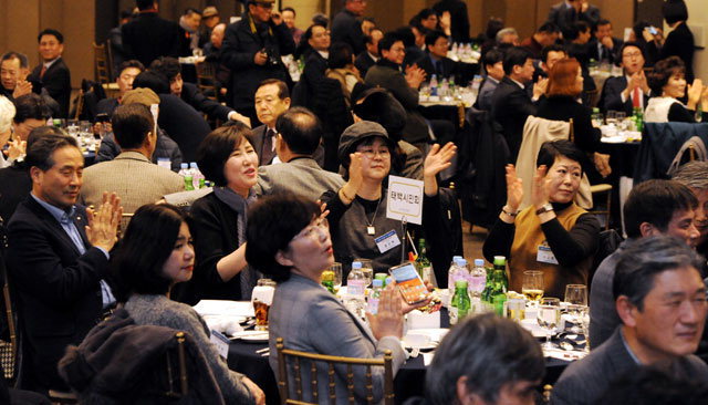 지난 1월 17일(목) 서울 그랜드컨벤션센터에서 열린 강원도민회중앙회 신년인사회는 2시간 넘게 화기애애한 분위기속에서 진행됐다.도민회중앙회와 46개 지역도민회,18개 시·군민회기 입장으로 시작된 신년인사회는 올해 자랑스러운 강원인 수상과 도 경제부지사·도의장·강원도민회중앙회장의 감사패 전달,강원도민회 청년인상 수상에 이어 강원도 노래 제창으로 순으로 진행됐다.신년인사회에서는 강원대 음악학과 출신 민은홍 성악가가 축하공연을 해 행사장 분위기를 띄웠다.