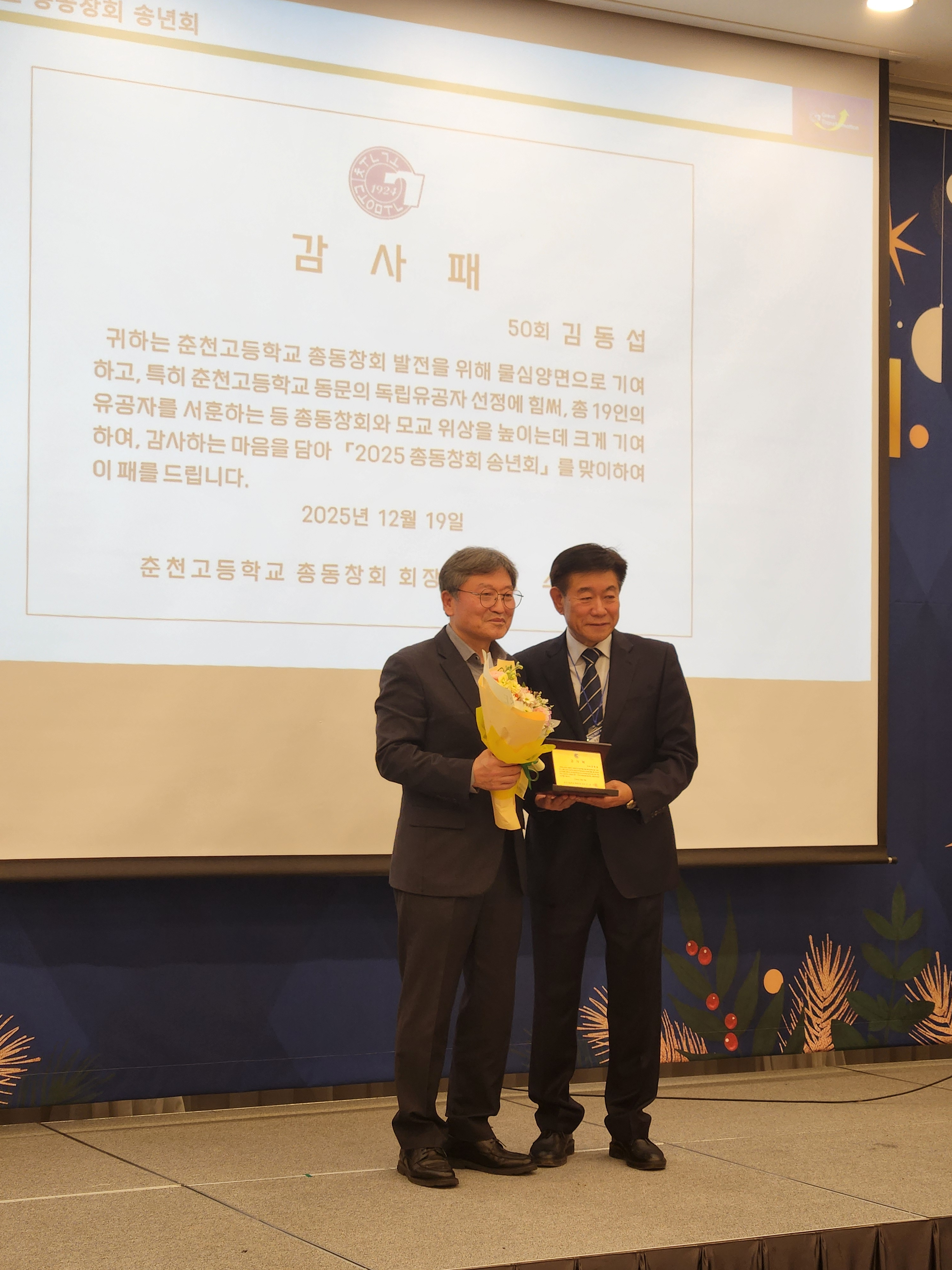 ‘2025년 춘천고 총동창회 송년회’ 가 지난 12월 19일(금) 오후 6시 춘천 세종호텔에서 성황리에 열렸다.
