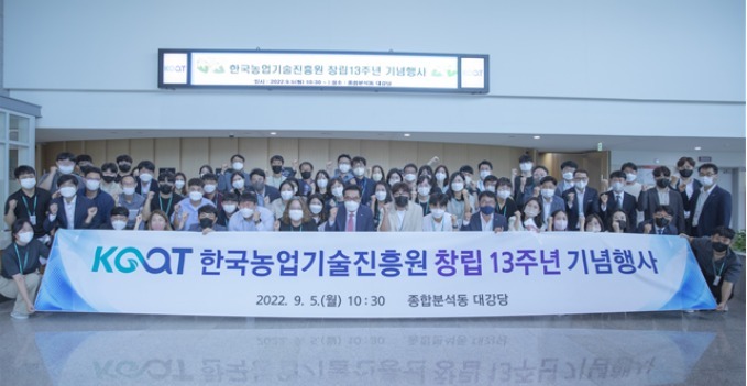 한국농업기술진흥원(KOAT)은 창립 13주년을 맞아 지난 9월 5일(월) 익산 본원 대강당에서 기념행사를 개최했다.
