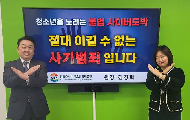 춘천바이오산업진흥원(원장 김창혁 55회)은 춘천도시공사 홍영 사장의 지목으로 지난11월 13일(수) 청소년 도박 문제의 심각성을 알리고 이를 근절하기 위한 '청소년 도박 근절 프로젝트' 릴레이 챌린지에 동참했다.