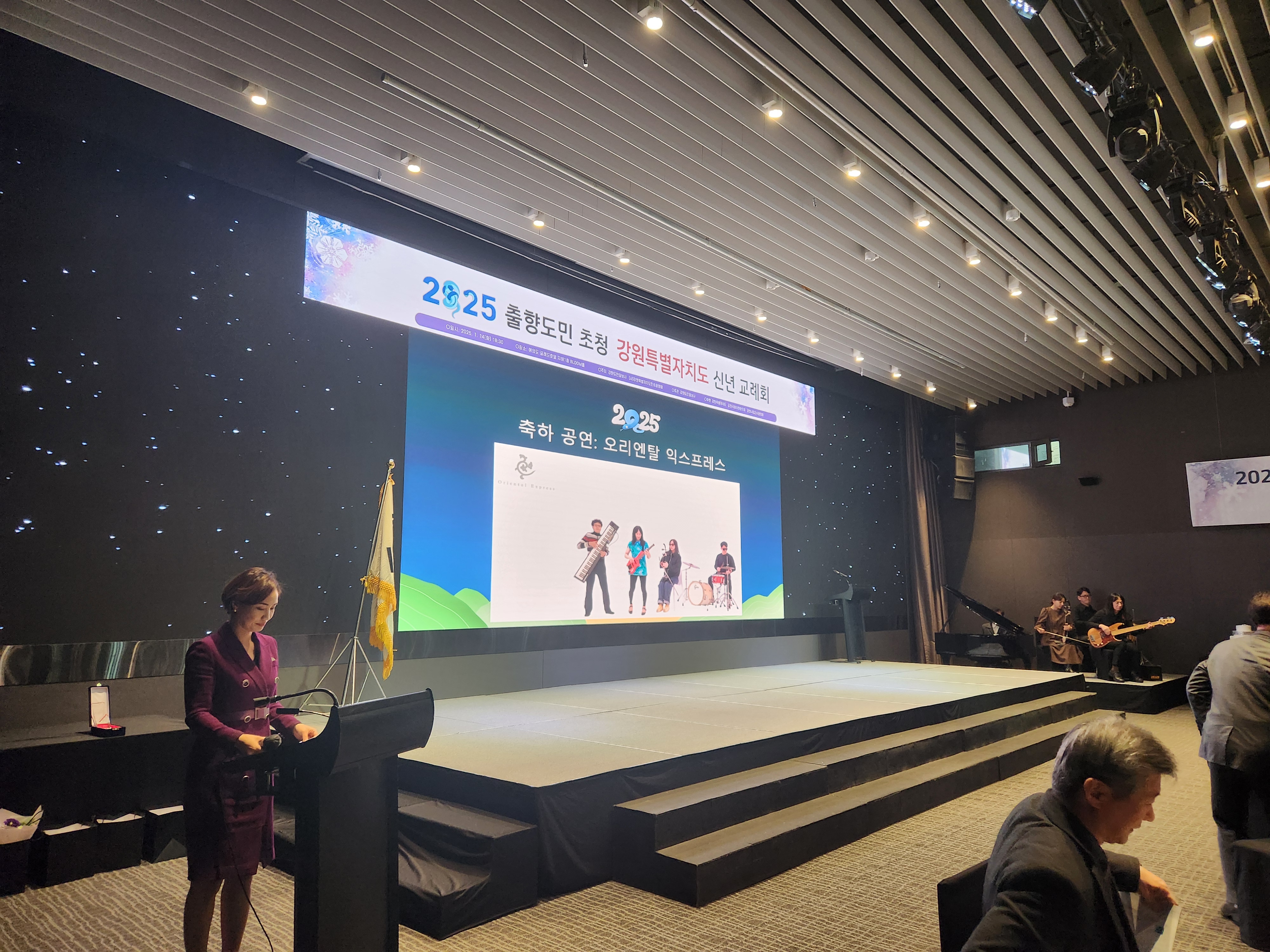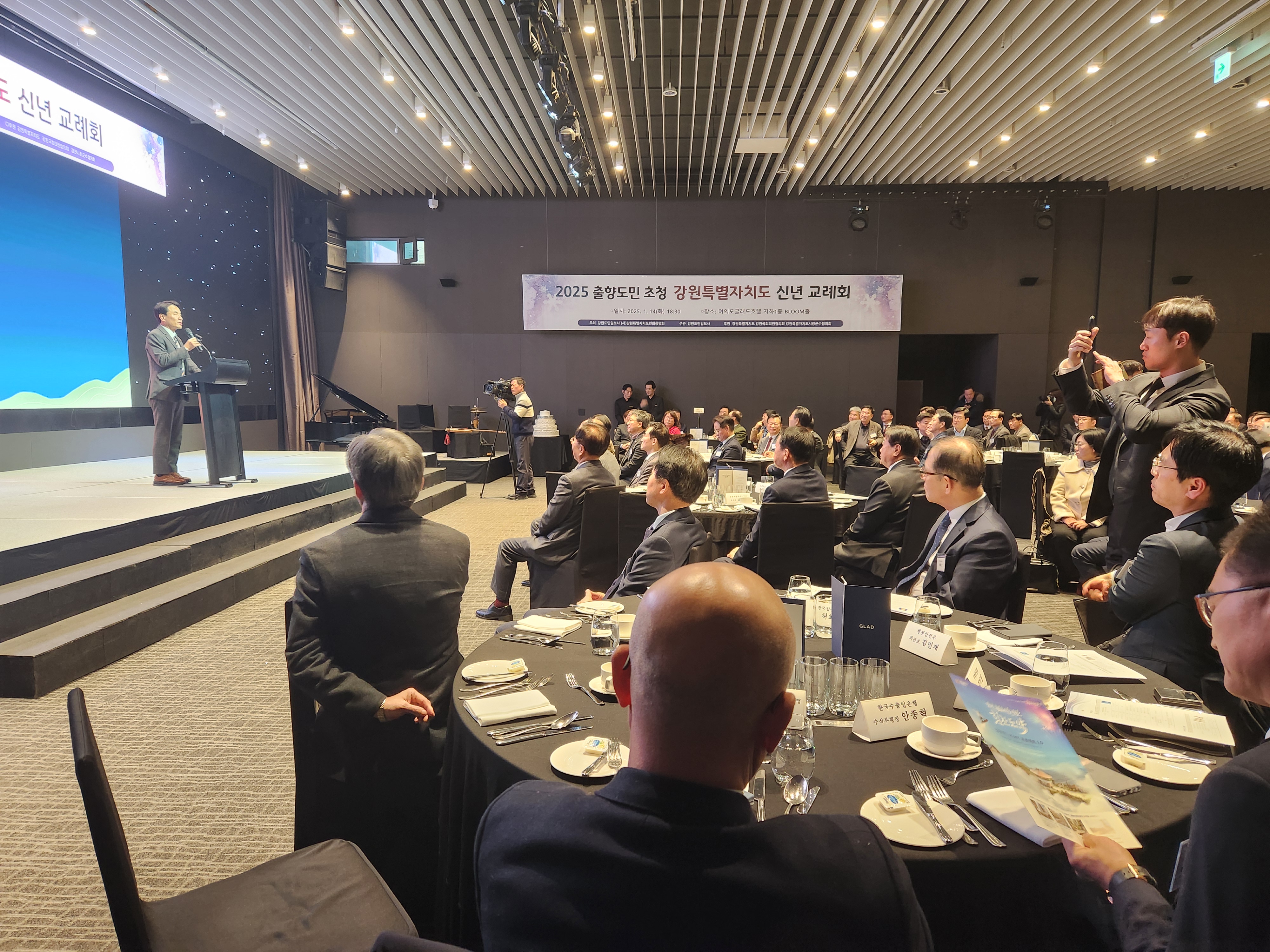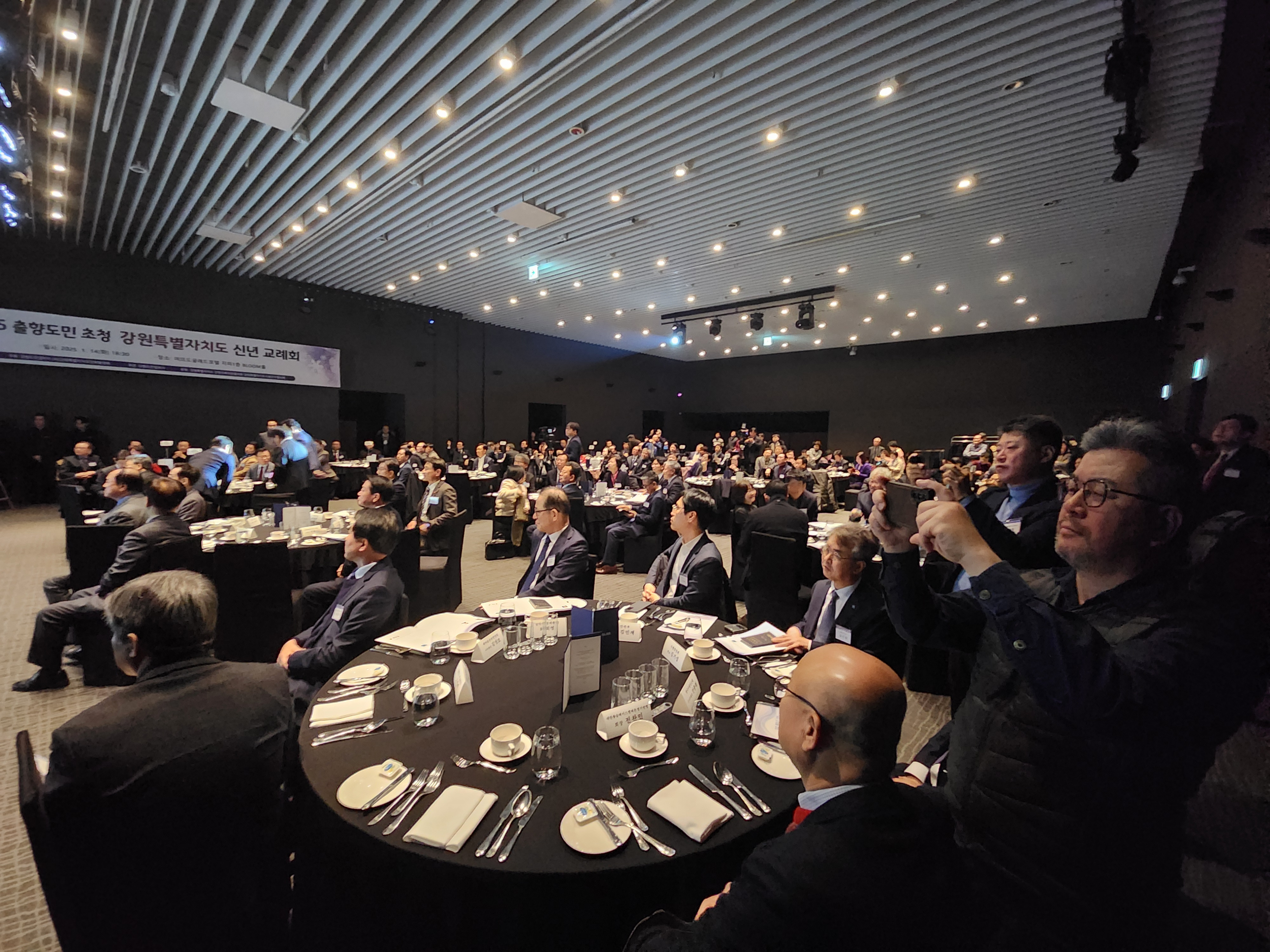 이날 자리는 중앙정치권에서 활약하고 있는 강원 여야 국회의원들과 용산대통령실, 정부 부처, 국회, 공공기관 등 각계각층에서 활약하고 있는 도출신 공직자 및 출향 도민들이 한자리에 모여 새해 덕담을 나누며 강원특별자치도만 의 ‘특별한 한해’를 만들어 나가자고 다짐했다.