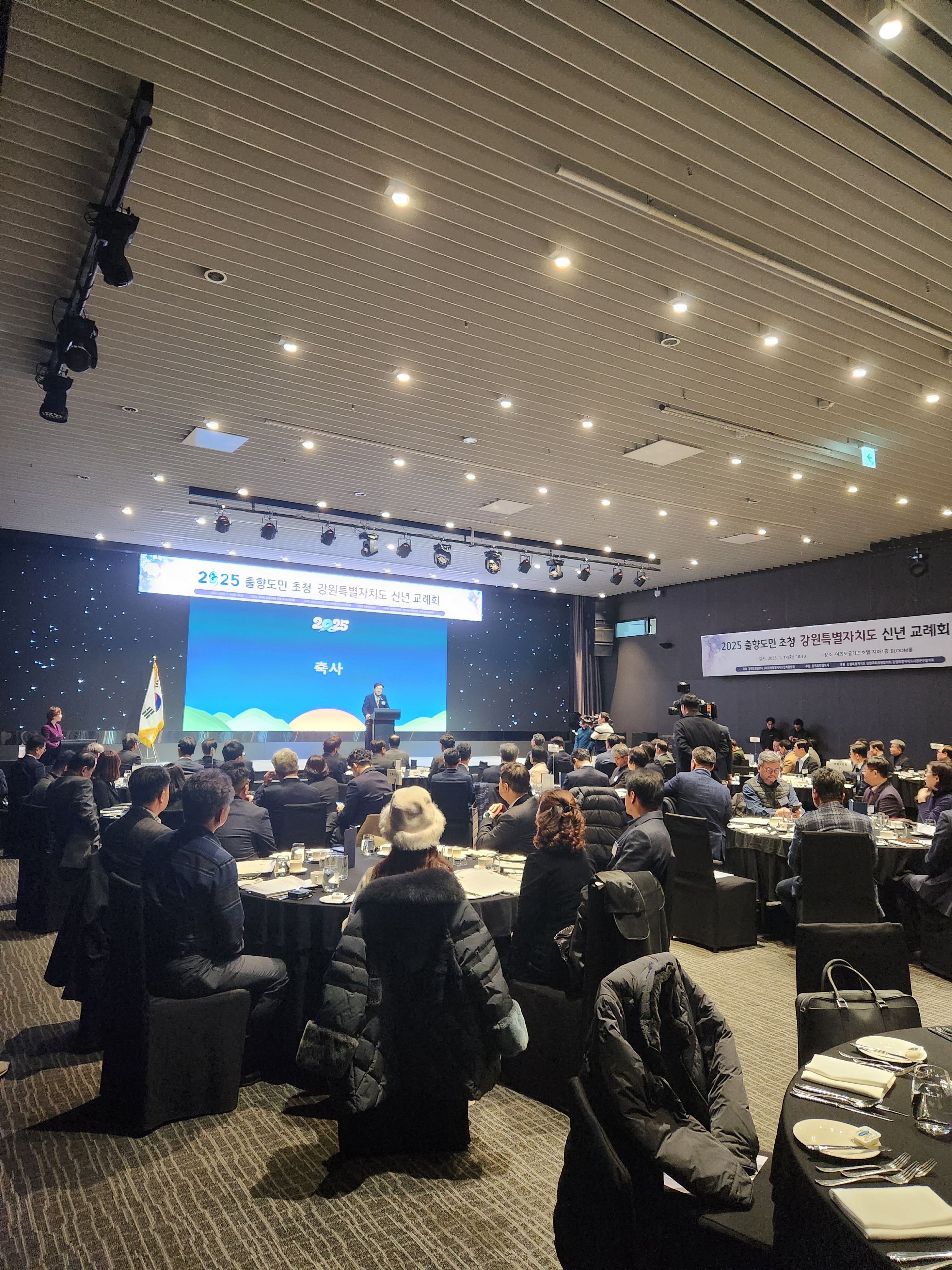 강원도민일보사(회장 김중석 43회)와 강원특별자치도민회중앙회가 지난 1월 14일(화) 오후 6시 30분 서울 여의도 글래드호텔에서 주최한 출향도민 초청 신년 교례회는 탄핵정국으로 인한 정치·사회적 갈등을 겪고 있는 시국 속에서 강원인의 대화합과 ‘오직 강원발전’이라는 명분으로 화기애애한 분위기를 연출했다.