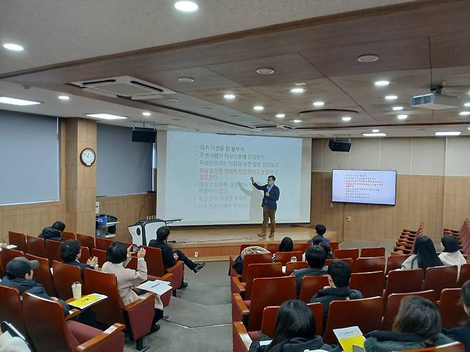 이날 특강에서 이 교수는 자살에 대한 이해와 자살 행동이 주는 영향, 자살에 대해 어떻게 바라보고 질문하고 들어야 하는지에 대해 설명했다.