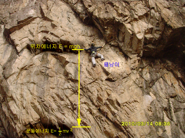 저높이가 한 5미터 정도 된다고 치고 용남이 몸무게가 60Kg이라고 할때