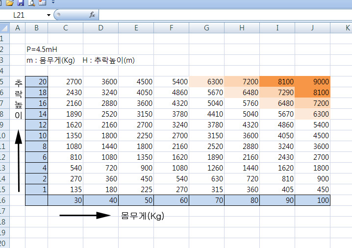 N = 몸무게 * 속도 = 몸무게 * 4.5 * 높이