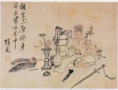 이것은 그야말로 <포의 풍류도(布衣風流圖)>라고 해야할 것이 아니라 <팔선도>에서 여덟 신선들이 가지는 각각의 '암팔선(暗八仙)'을 모두 그리고 있다는데서 그림 이름은 <암팔선(暗八仙) 풍류도>라고 해야 마땅할 것이다. .