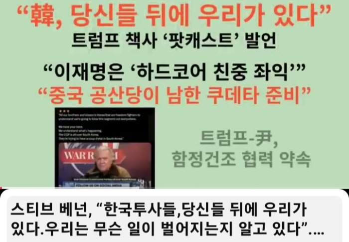 ☛ 트럼프 책사 전 백악관 수석 전략가 ’스티븐 배넌‘(강경 우파 성향)은