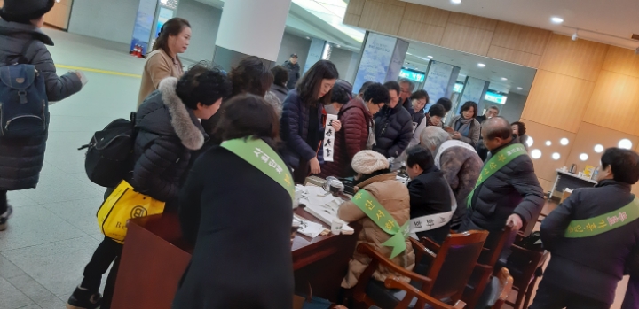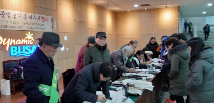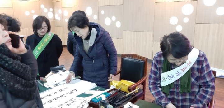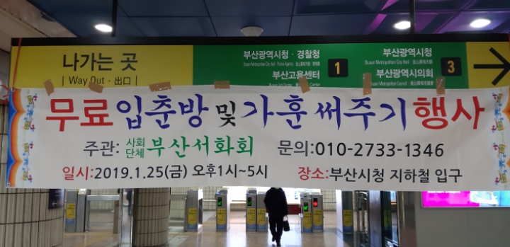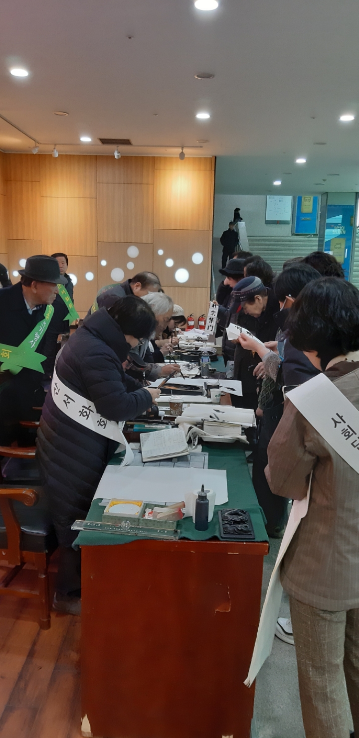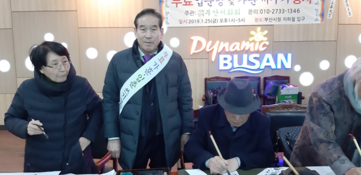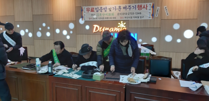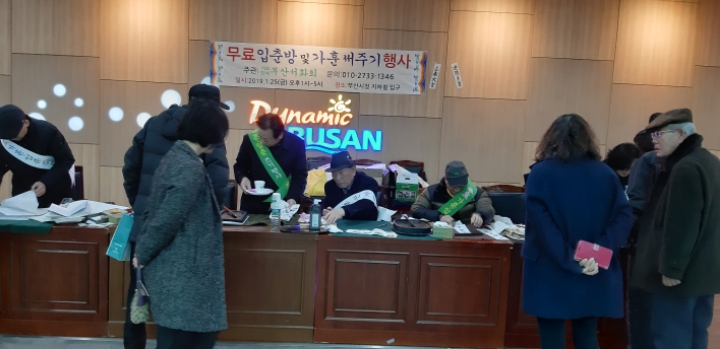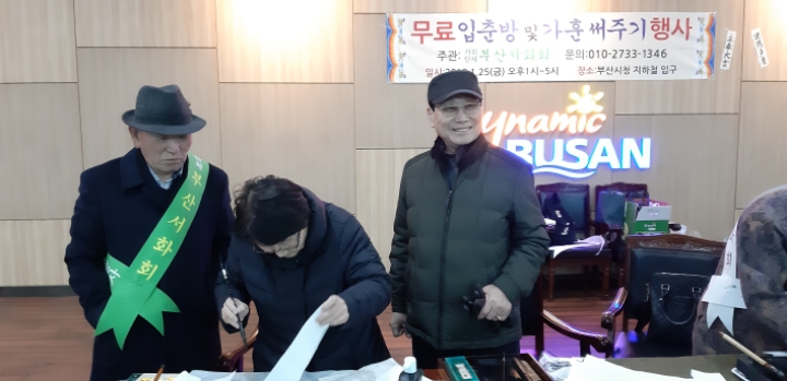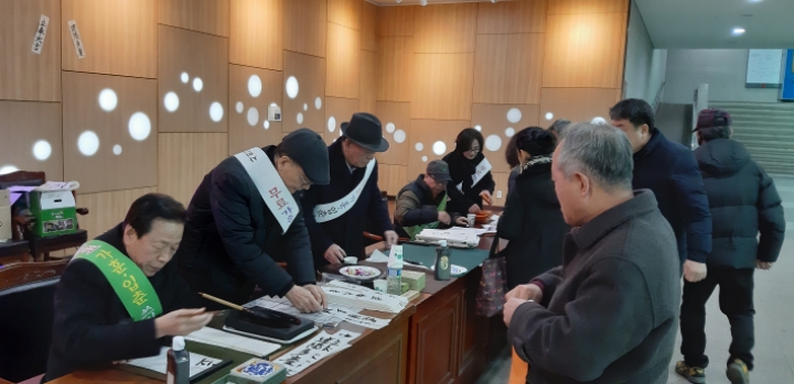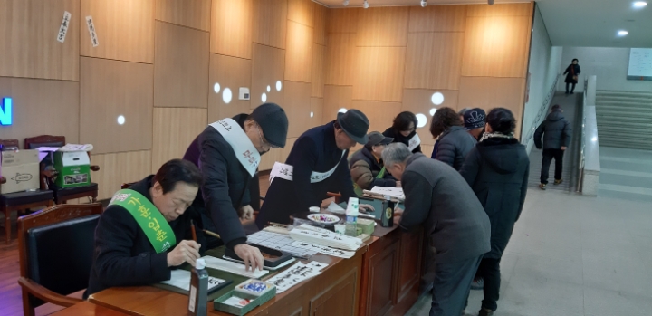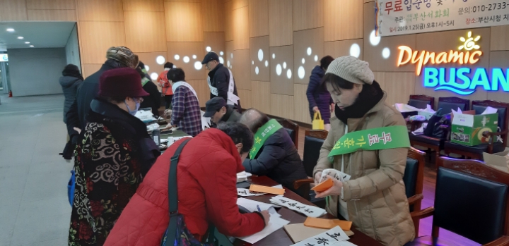 행사를 부산서화회 주관으로 부산광역시청에서 2019년1월25알11시부터17시까지약1.000여명의 시민 고객들이 참여하여 부산서화회 회원들이미리 준비한 입춘방을 나누어 주고 현장에서 직접 써주며 보람있는 하루를 보냈다.