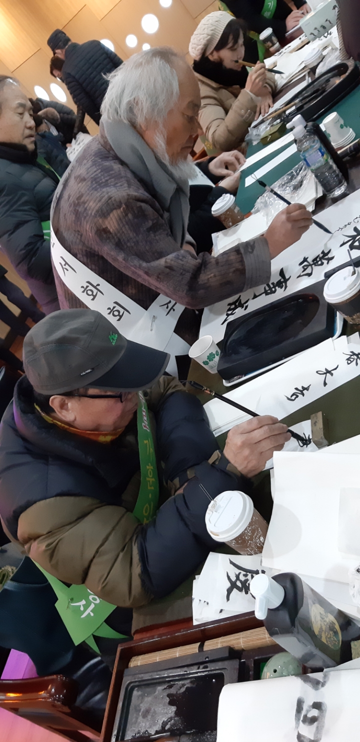 김은숙 石普 송유장 외 부산서화회 회원 여러분의 노고가 돋보였으며 더우기 현장에서 직접 원하는 문구로 가훈을 멋지게 써주신 회장님 소연,효성, 석정 선생님 정말 수고가 많았습니다.