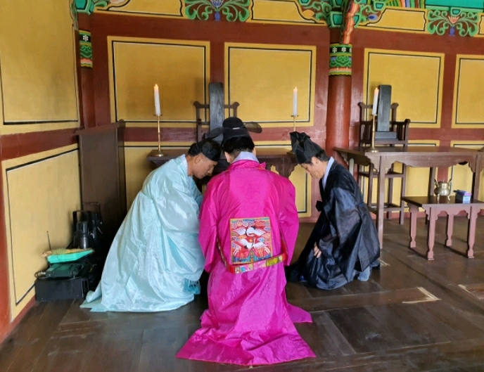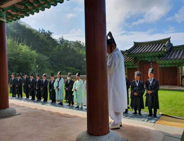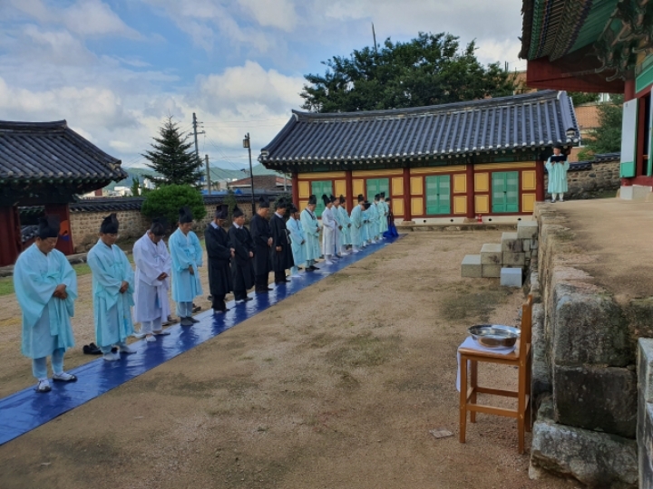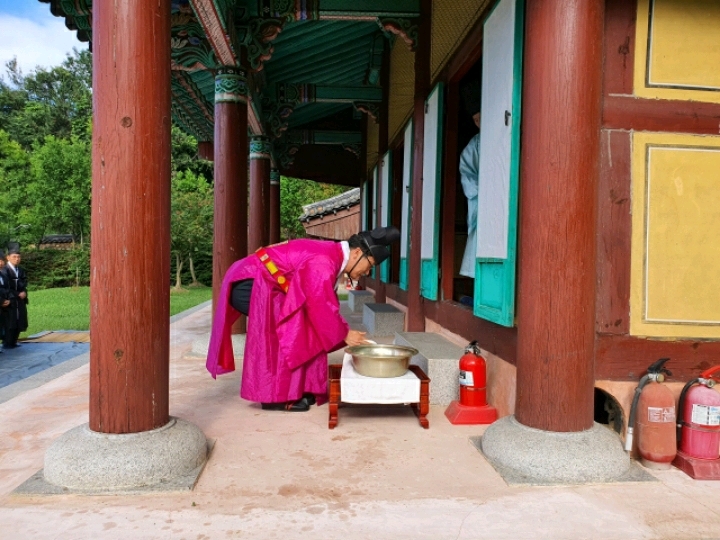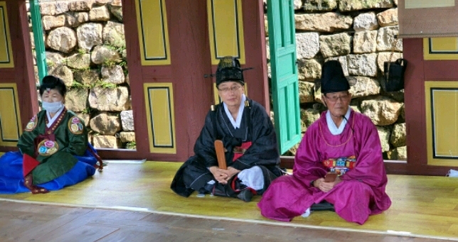 표충사 분향례에 이어 9시에는 김해향교 대성전 분향례에 참석하여 김해시의회 송유인 의장이 김해향교 전교 김일구님과 추암 이성규님의 집례로 유림 회원 여러분과 같이 고유례를 올렸다.