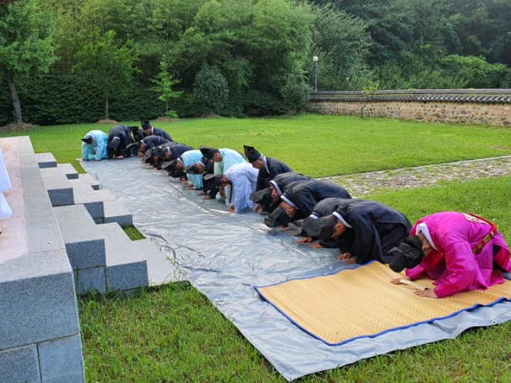 코로나19로 어려운 시기지만 모두 마스크를 착용하고 오직 나라를위해 싸우시고 장엄하게 순절하신 사충신의 후손들과 향임 김경규님의 집례로 정성껏 삭망례겸 김해시의회 의장 송유인님의 고유례를 올렸다.