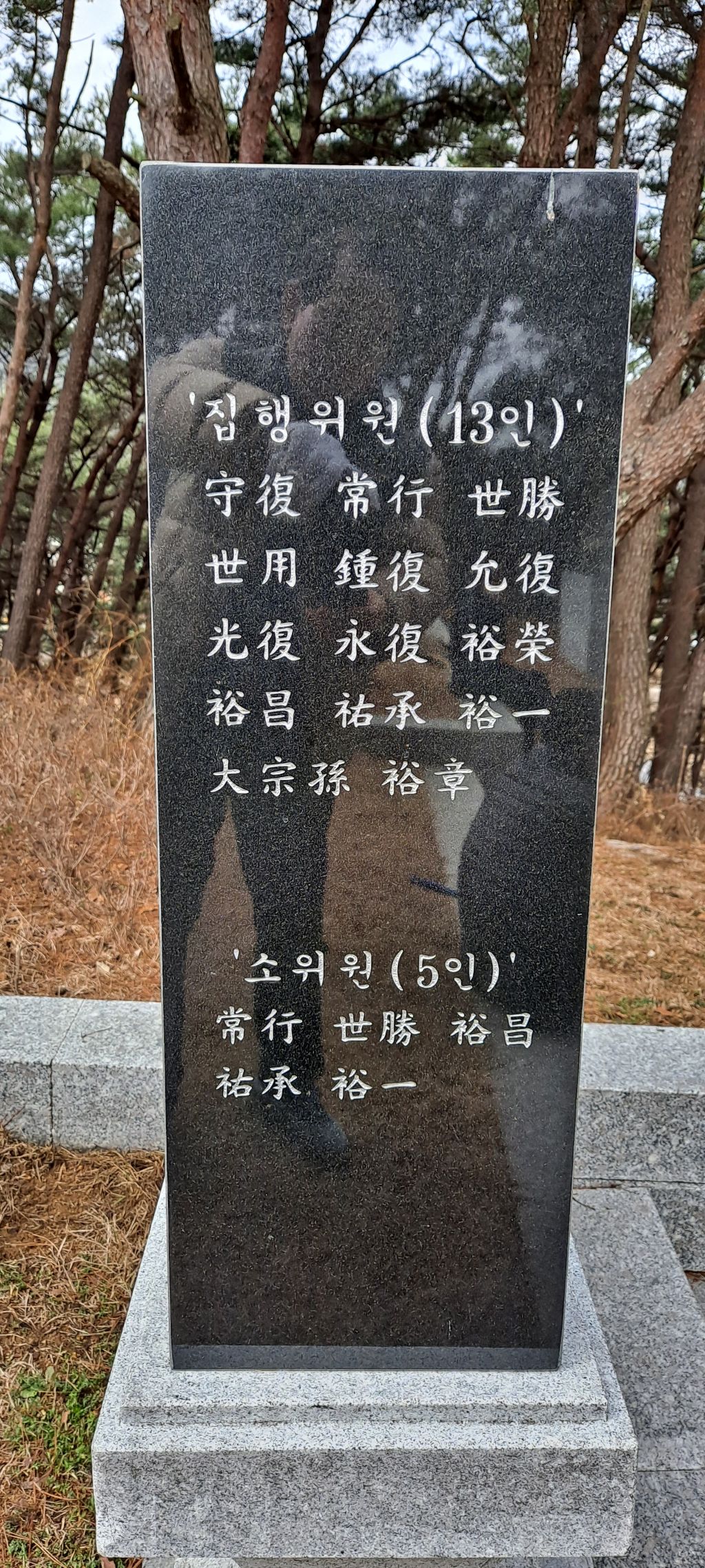 전대종회장 우승. 사천공 회장 민강 윤복.송장군 유창. 대종회 총무유태.사천공총무유승.진례 평지 우복.청년회장 승목이 기계를가져와서 수고하고 故유택의子 민규도 많은 수고를 하였다.