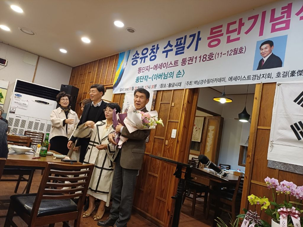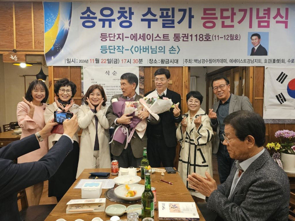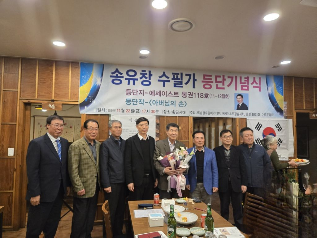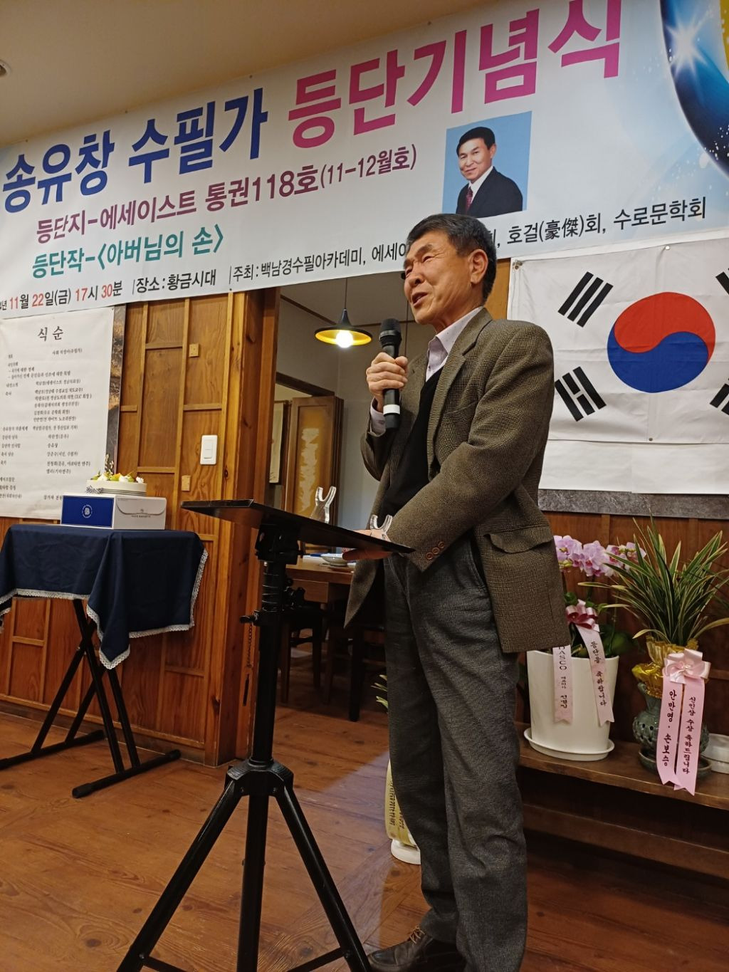민주평통 협의회 회장이며 청주송씨 대종회 부회장인 유창 장군이 부단한 노력으로 에세이스트가 되어 수필가 등단식을 가졌다.