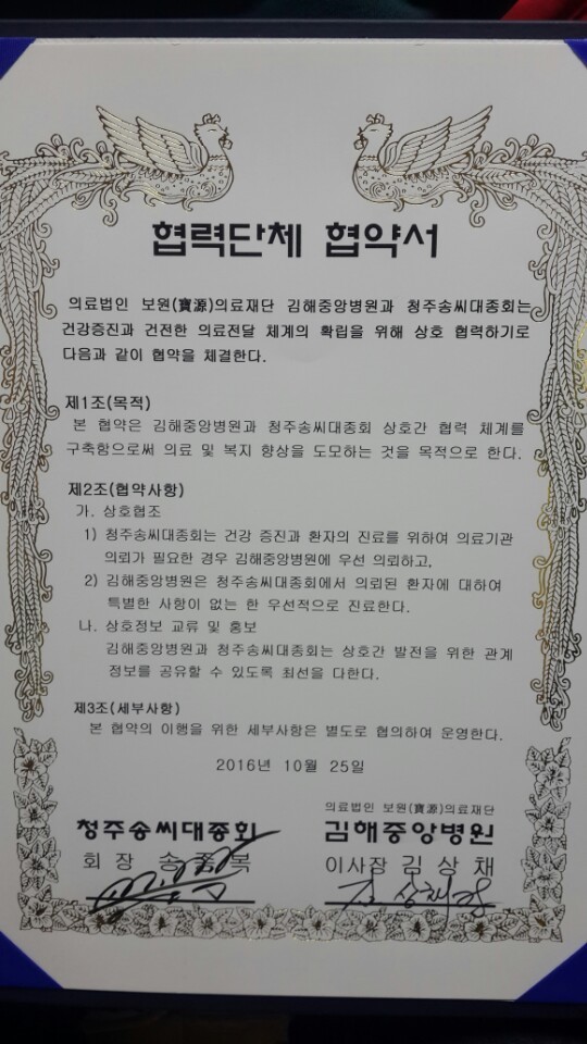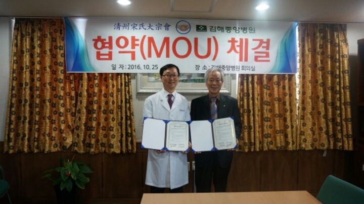 김해중앙병원은 청주송씨 대종회와 상호 협력관계 체결을