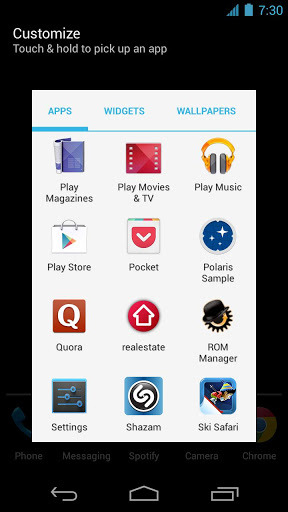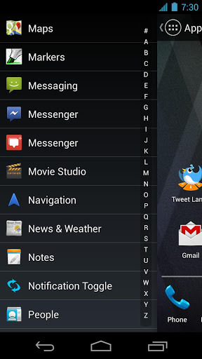 * Quicksearch, a fast and powerful feature that allows you to search for apps, contacts and even music directly from the action bar.