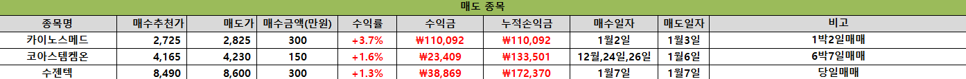 1월 7일 급등주문자반(단타반)성적보고 / 수젠텍 1% 수익