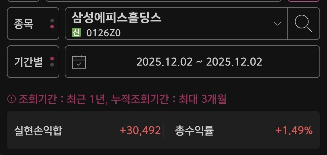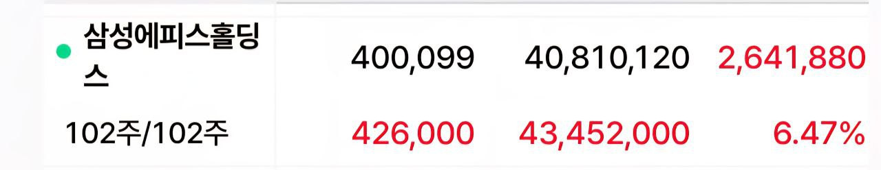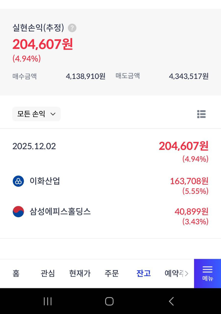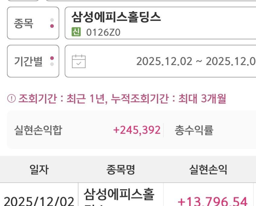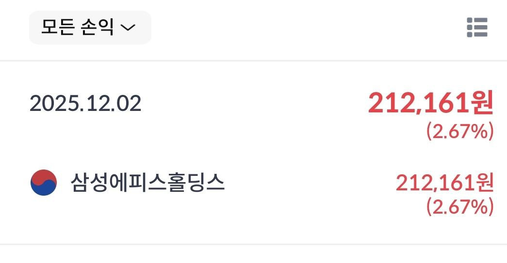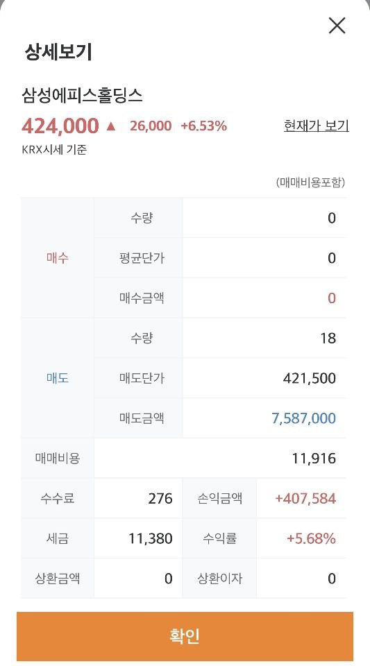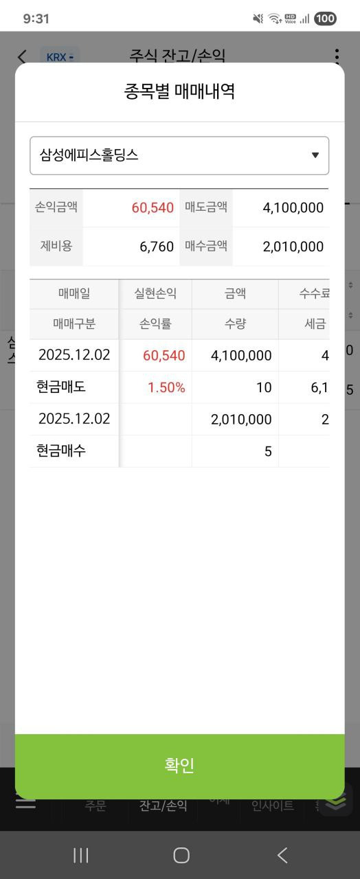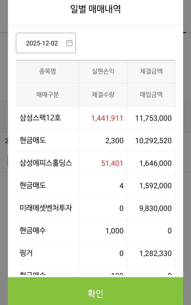 12월2일 삼성에피스홀딩스 4% 수익 416,000원 매도 후 449,000원까지 상승 후 442,000원 마감