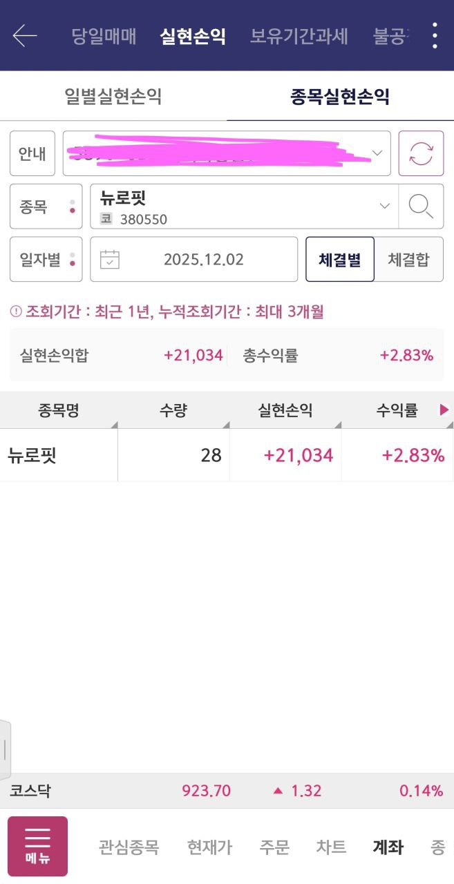 뉴로핏 신규주 신고가기법으로 매수 후 상승구간 익절했습니다