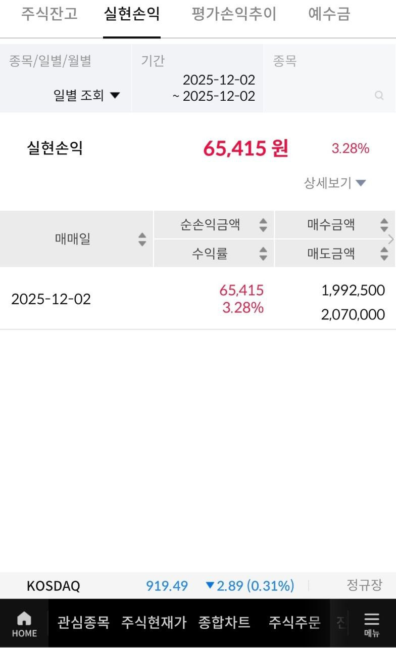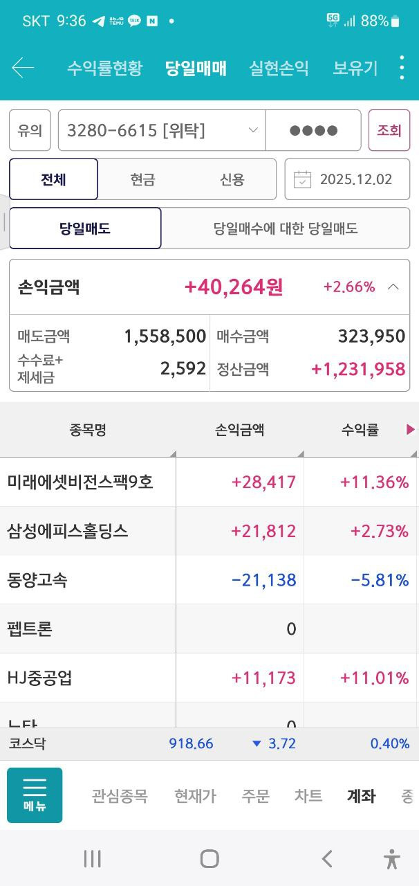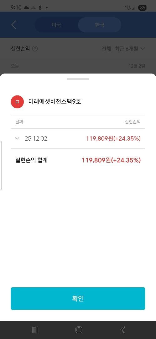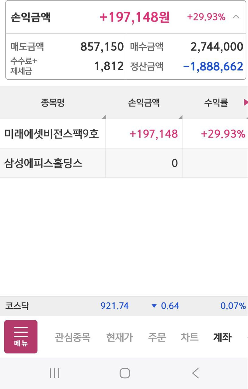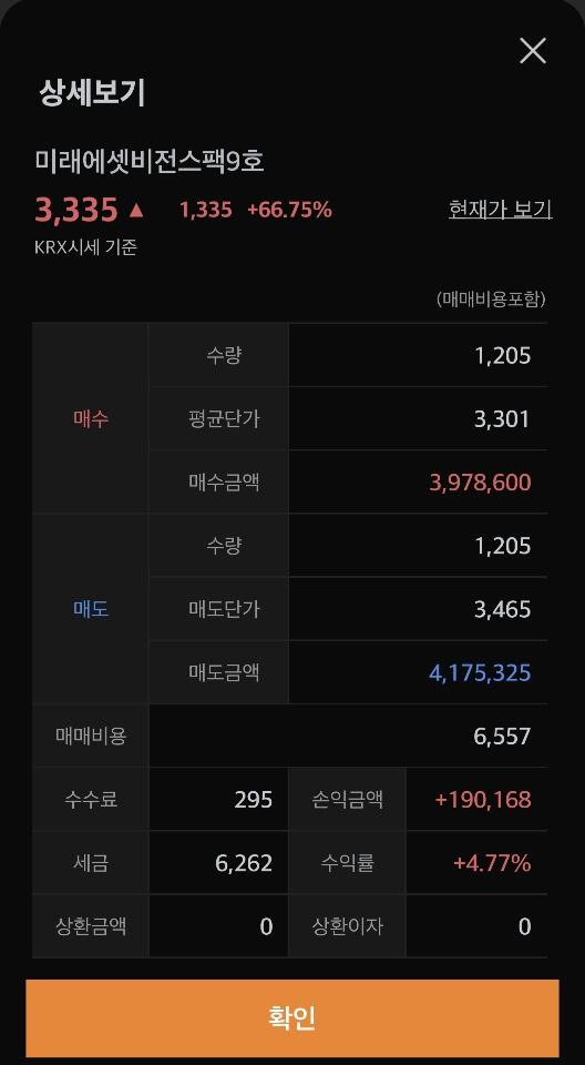 12월1일 미래에셋비전스팩9호 7% 수익 시간외 3,430원 매도