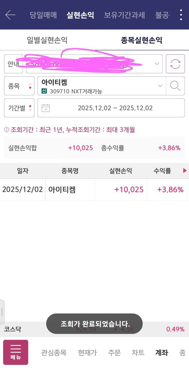 아이티켐 신규주 신고가 돌파기법으로 매수 후 상승구간 익절했습니다